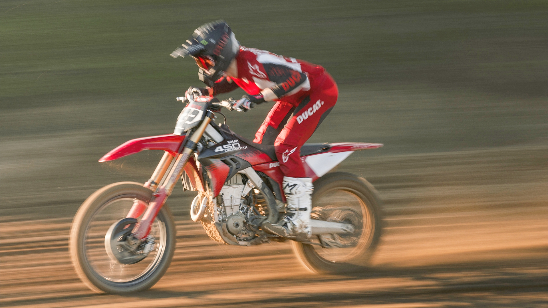 Ducati membawa pengalaman dari MotoGP dan WorldSBK ke dunia tanah. Desmo450 MX Factory dilengkapi Ducati Traction Control (DTC) yang membaca tingkat selip roda belakang secara aktual — bukan sekadar berbasis putaran mesin.
