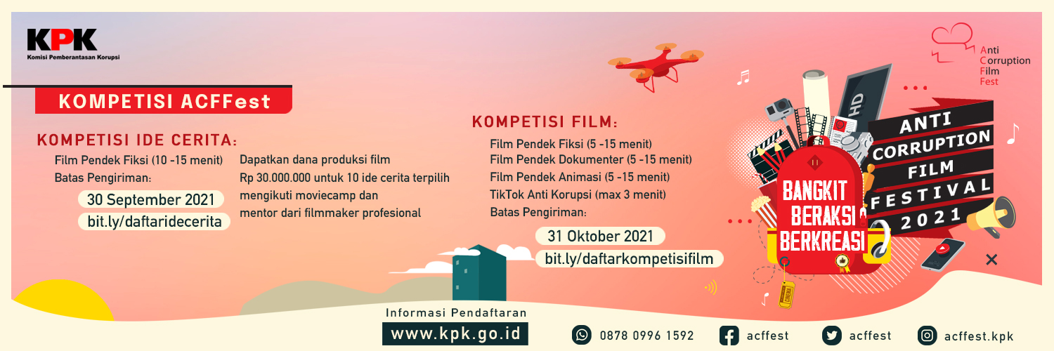 Jakarta, Beritainn, – Masa Pandemi bukan berarti berhenti dari aktifitas dan kreatifitas, Komisi Pemberantasan Korupsi (KPK) kembali menyelenggarakan Anti-Corruption Film Festival – ACFFest 2021. Melalui peluncuran secara daring, penyelenggaraan ACFFest yang ketujuh diresmikan oleh Wawan Wardiana selaku Plt. Deputi Bidang Pendidikan dan Peran Serta Masyarakat KPK RI.