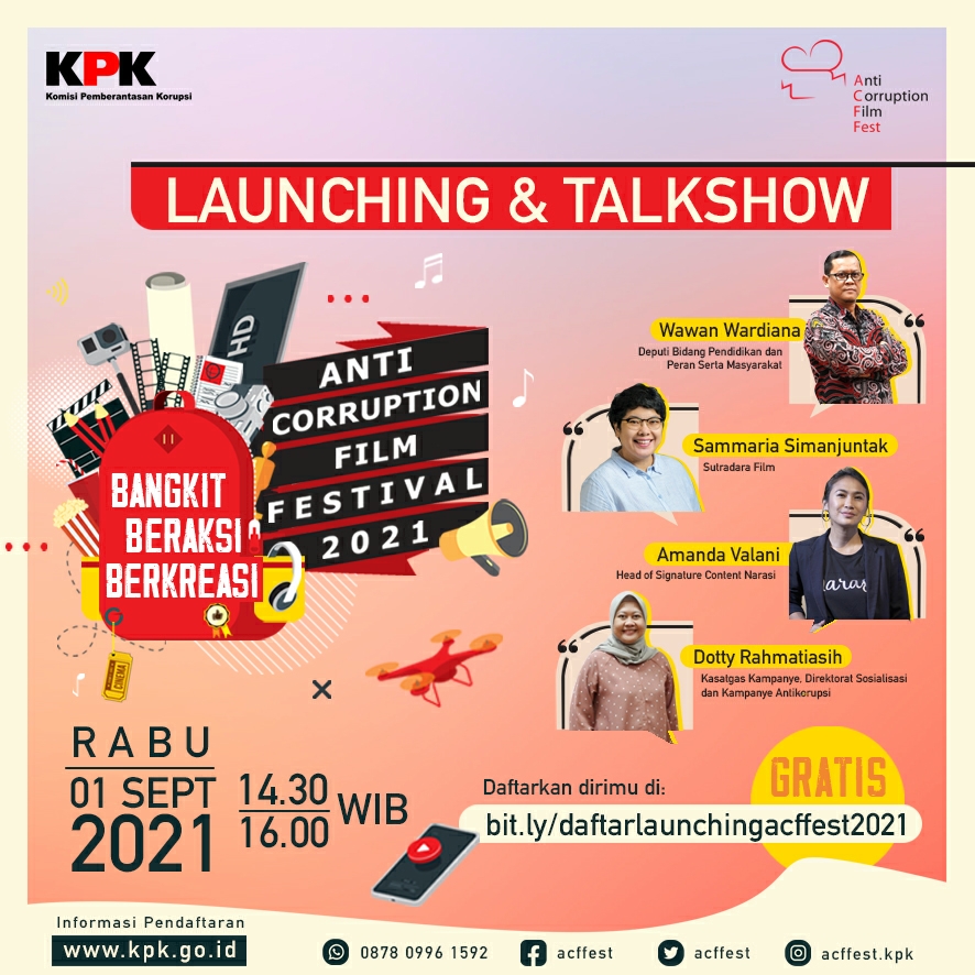 Jakarta, Beritainn, – Masa Pandemi bukan berarti berhenti dari aktifitas dan kreatifitas, Komisi Pemberantasan Korupsi (KPK) kembali menyelenggarakan Anti-Corruption Film Festival – ACFFest 2021. Melalui peluncuran secara daring, penyelenggaraan ACFFest yang ketujuh diresmikan oleh Wawan Wardiana selaku Plt. Deputi Bidang Pendidikan dan Peran Serta Masyarakat KPK RI.