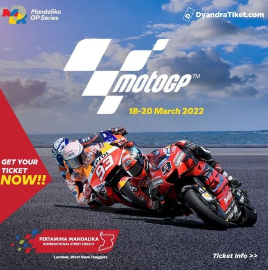 Dengan terpilihnyaIndonesia sebagai salah satu tuan rumah MotoGP 2022 tersebut, Mandalika Gran Prix Association (MGPA) telah resmu merilus harga tiket dan denah lokasi penonton. Dyandratiket kembali melanjutkan kerjasamanya dengan MGPA setelah sebelumnya telah melakukan penjualan tiket WorldSBK – Indonesian Round 2021, November lalu.