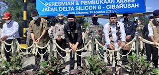 Acara peresmian akses jalan cikarang – cibarusah delta silicon 8 yang terletak di kawasan lippo cikarang berjalan dengan lancar, disertai pemotongan pita dan tetap menerapkan Protokol Kesehatan, setelah sambutan, peresmian dan pemotongan pita acara dilanjutkan yakni pemberian sembako kepada masyarakat oleh PJ.Bupati Drs H Dani Ramdan ,MT. (Sri Haryati)