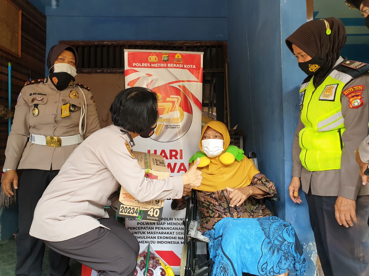 “Kegiatan Anjangsana dalam rangka Hut Polwan ke 73 tahun 2021 oleh Polwan Polres Metro Bekasi Kota sebagai upaya untuk memberikan semangat dan kepedulian kepada sesama rekan yg mengalami Sakit sudah menahun,”ujar Kasie Humas Polres Metro Bekasi Kota Kompol. Erna Ruswing Andari kepada media pada Jumat (27/08/21).