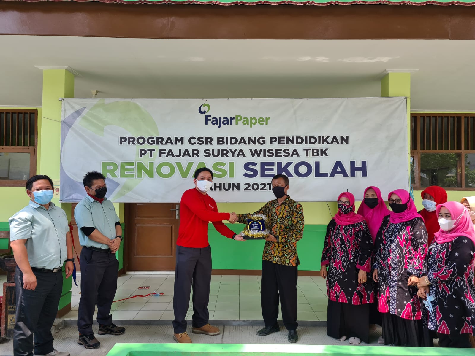 Bekasi, Beritainn, – Dimasa seperti saat ini hendaklah tetap punya jiwa sosial yang tinggi terutama untuk bangsa Indonesia dan perwakilan manajemen PT Fajar Surya Wisesa Tbk (“FajarPaper”),H. Zubastian Rachman beserta tim Corporate Social Responsibility (“CSR”) meresmikan salah satu sekolah yang telah selesai direnovasi pada hari Kamis, 9/09/2021. Program CSR Renovasi sekolah ini adalah bukti kepedulian FajarPaper terhadap dunia pendidikan khususnya di Kabupaten bekasi. Sebelumnya pada tahun 2018 Fajar Paper telah merenovasi 4 sekolah yang berada di wilayah Kabupaten Bekasi, kemudian di tahun 2019 berhasil merenovasi 7 sekolah dan program ini masih akan terus berlanjut sesuai dengan komitmen FajarPaper di tahun 2021 yaitu merenovasi 5 sekolah yang berada di wilayah Cikarang-Bekasi.